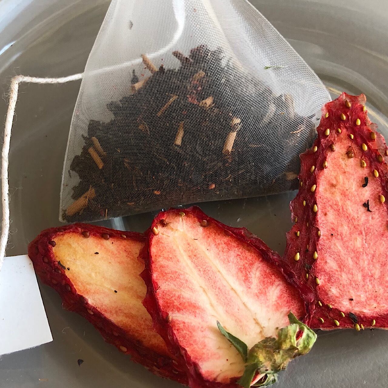ドライイチゴを紅茶に浮かべて飲むフロート苺ティー。