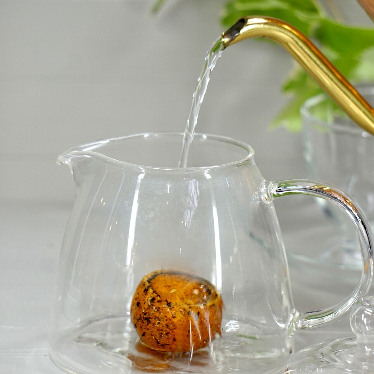 ティーポットにそのまま(または、手でほぐして)柚子茶を入れ、熱湯(90〜100°c)を注ぎます。