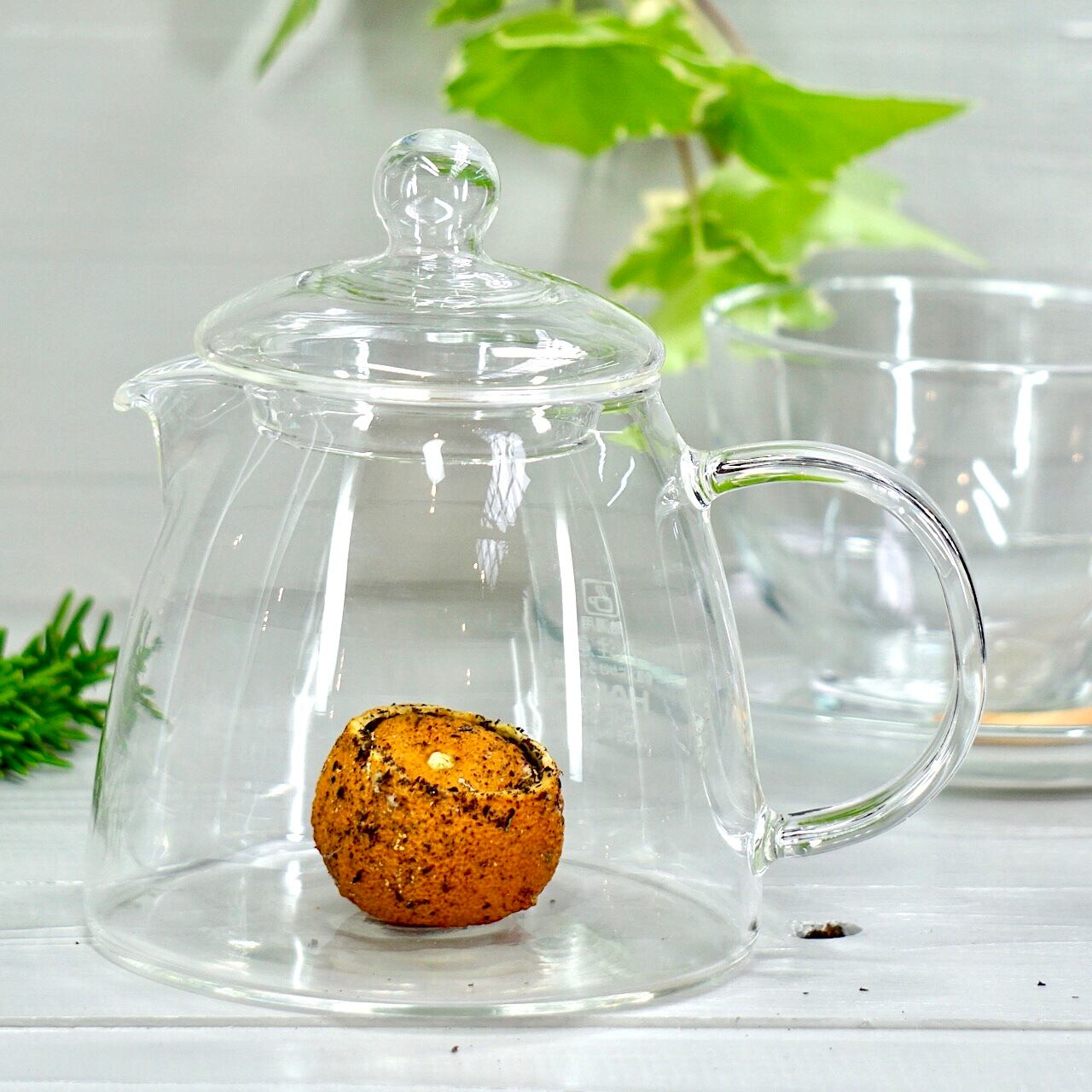 自然栽培の小さめの姫柚子に、紅茶茶葉を詰めて丸ごと乾燥した柚子ティーです。